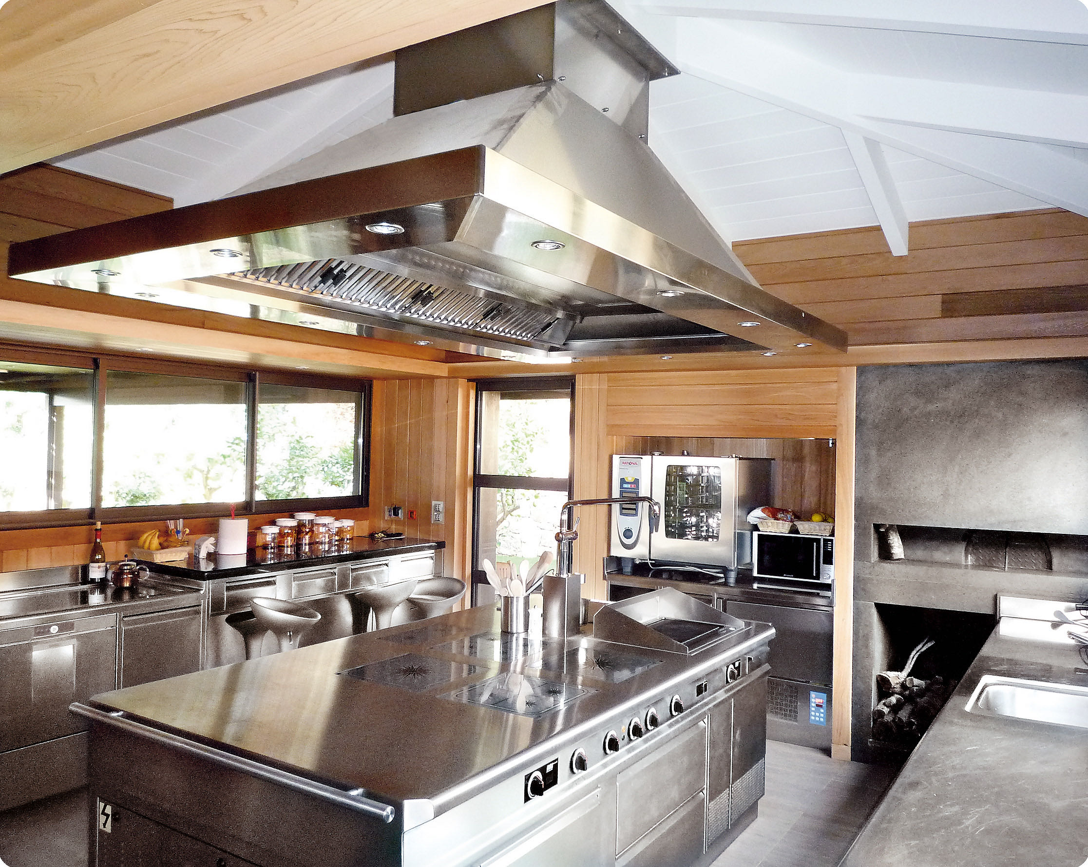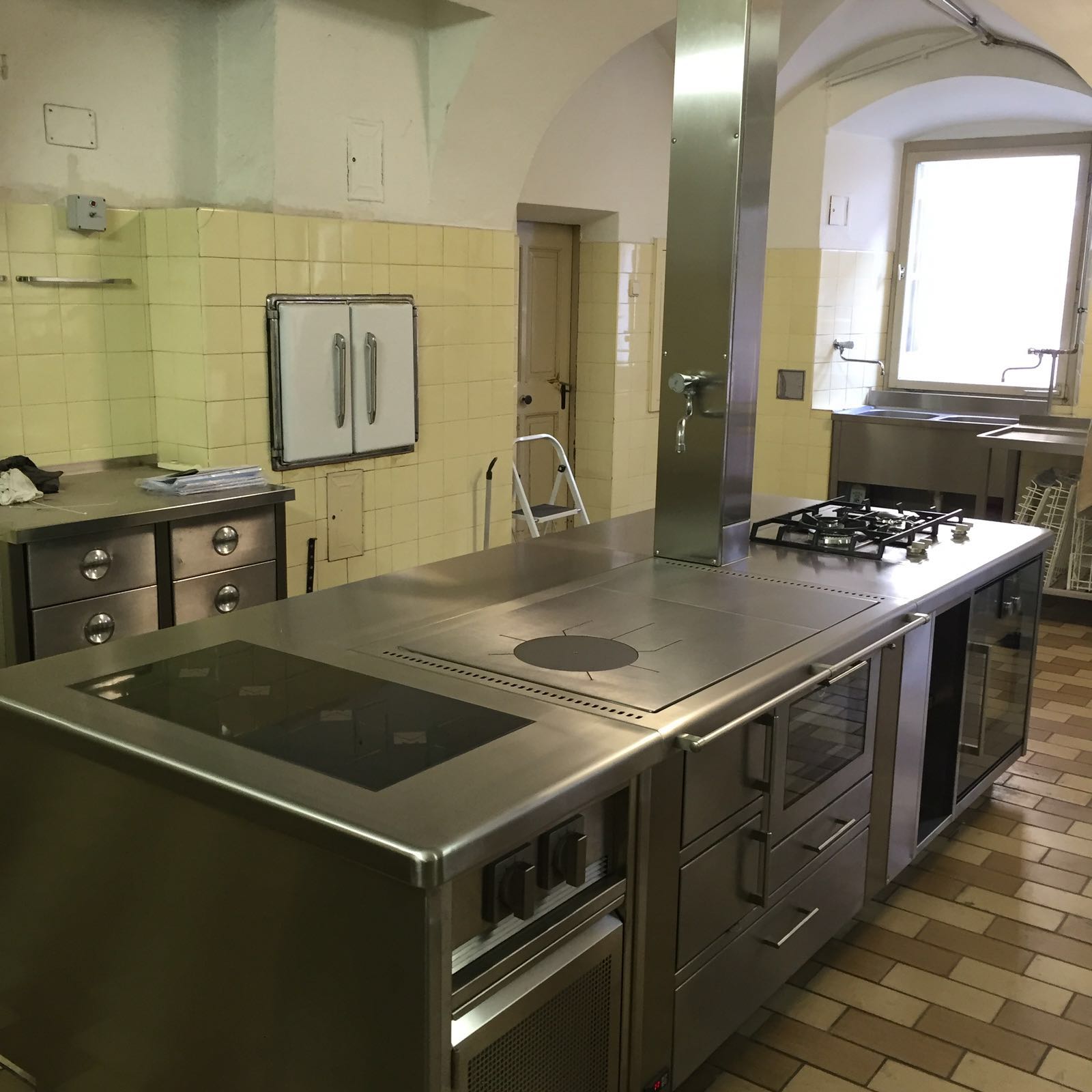 Realizzazione di una nuova cucina su misura. Blocco trivalente ad induzione, gas e legna.